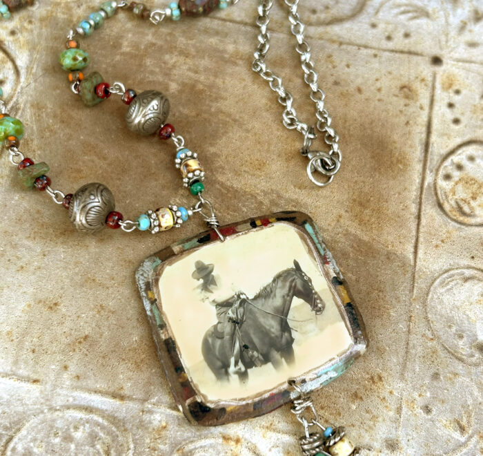 “A Moments Pause,” Cowgirl and Horse Vintage Photo Necklace